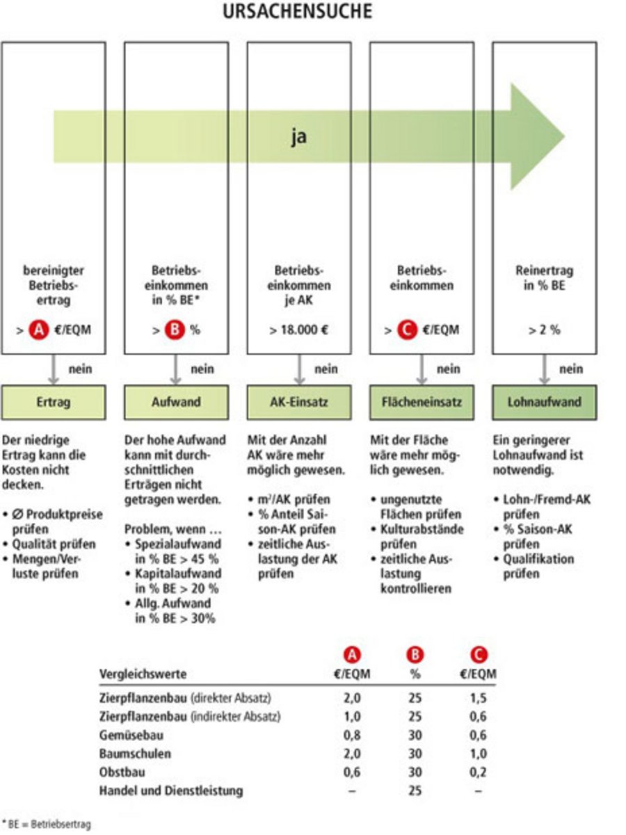 Für den Bereich Gartenbau bietet der Betriebsvergleich des Zentrums für Betriebswirtschaft im Gartenbau Hannover (ZBG) wichtige Unterstützung. Betriebe, die am Betriebsvergleich teilnehmen, erhalten einen individuellen Beratungsbrief, aus dem wichtige Analyseergebnisse hervorgehen und Verbesserungen abgeleitet werden können. Wenn Sie am kostenlosen Betriebsvergleich 4.0 teilnehmen möchten, wenden Sie sich an das ZBG.