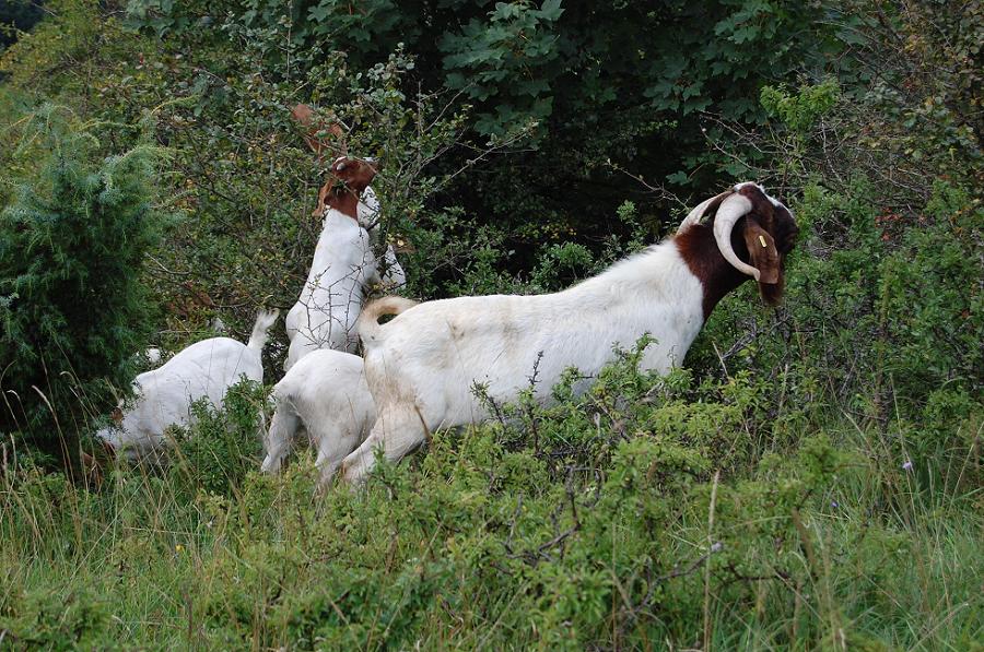 Ziegen sind Herdentiere, in der Regel fressen sie gemeinsam in Gruppen. Ziegenherden, auch im Mischbestand mit Schafen, werden immer öfter zur zielgerichteten erhaltenden Landschaftspflege eingesetzt. Ziegen können einen hohen Anteil ihres Futterbedarfs mit Blättern, jungen Gehölztrieben und Rinde decken. Daher bietet die Beweidung mit einer Ziegenherde eine sowohl kosteneffiziente als auch umweltverträgliche Art der Beseitigung von unerwünschten Pflanzenarten. Sie können Gestrüpp und Verbuschungen schnell beseitigen und eignen sich besonders für die Pflege verbuschter Magerrasen.