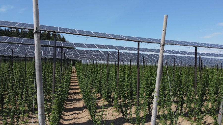 Im Projekt HoPVen wird erforscht, wie sich Photovoltaikanlagen mit dem traditionellen Hopfenanbau kombinieren lassen. Beteiligt sind unter anderem die Fraunhofer-Gesellschaft sowie die Hochschule Weihenstephan-Triesdorf.