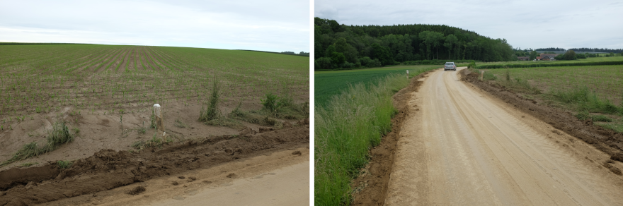 Bei Überflutungen ist auffällig, dass sie meist überraschend schnell erfolgen und das Wasser häufig nicht aus einem Fluss, sondern von untypischen Orten kommt, wie aus einem Acker (Abbildung 2), von einer Straße oder sogar aus dem Wald.