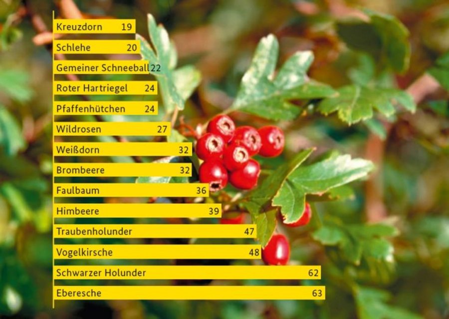 Die Monate Oktober und November eignen sich gut als Pflanzzeitpunkt einer neuen Hecke. Als passende Gehölze kommen einheimische Sträucher und Bäume infrage, die vielen Tieren Lebensraum und Nahrung bieten und die an die regionalen Bedingungen angepasst sind. Geeignet sind beispielsweise Weißdorn, Haselnuss, Holunder, Hartriegel oder Schlehe. Die Anpflanzung von unterschiedlichen Straucharten bietet ein weites Blüten- und Fruchtangebot. Auch Bäume können in die Hecke integriert werden.