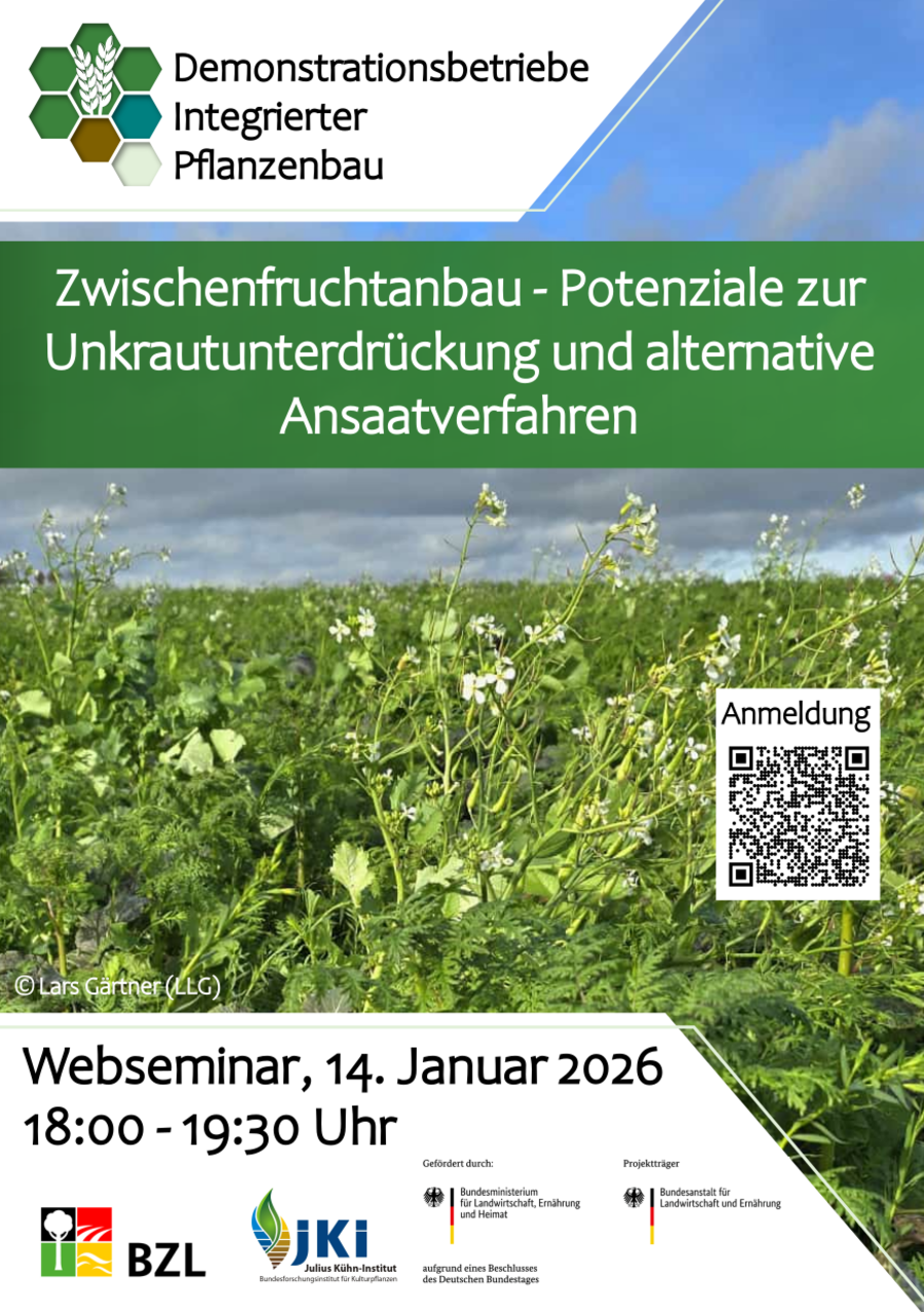 Pflanzenbauliche Maßnahmen ausschöpfen und dabei Produktionsgrundlagen schützen: die vierteilige Reihe der Web-Seminare aus dem Modell- und Demonstrationsvorhaben „Demonstrationsbetriebe Integrierter Pflanzenbau“ mit dem Schwerpunkt Pflanzenschutz wird am 14. Januar 2026 abgeschlossen.