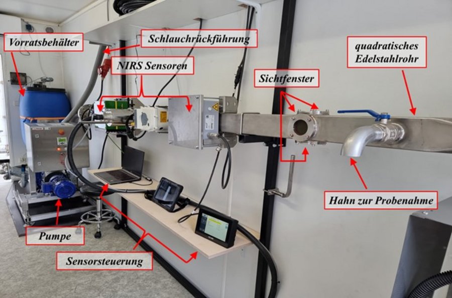 Daher sollten diese Geräte stets gut gewartet werden und – vergleichbar zur verpflichtenden Prüfung von Pflanzenschutzgeräten („Spritzen-TÜV“) – regelmäßig von einer unabhängigen Institution geprüft werden. Einer der Projektpartner, die Landesanstalt für Landwirtschaft in Freising, hat ein solches Prüfverfahren entwickelt. Grundbaustein dieses Qualitätssicherungssystems für die Überprüfung von in der Praxis eingesetzten NIRS-Sensoren zur Online-Messung der Nährstoff- und Trockensubstanzgehalte in flüssigen Wirtschaftsdüngern ist eine spezielle, stationäre Messstation. Diese Messstation schafft optimale Bedingungen, um flüssige Wirtschaftsdünger unter praxisnahen, aber standardisierten und daher vergleichbaren Bedingungen zu untersuchen.