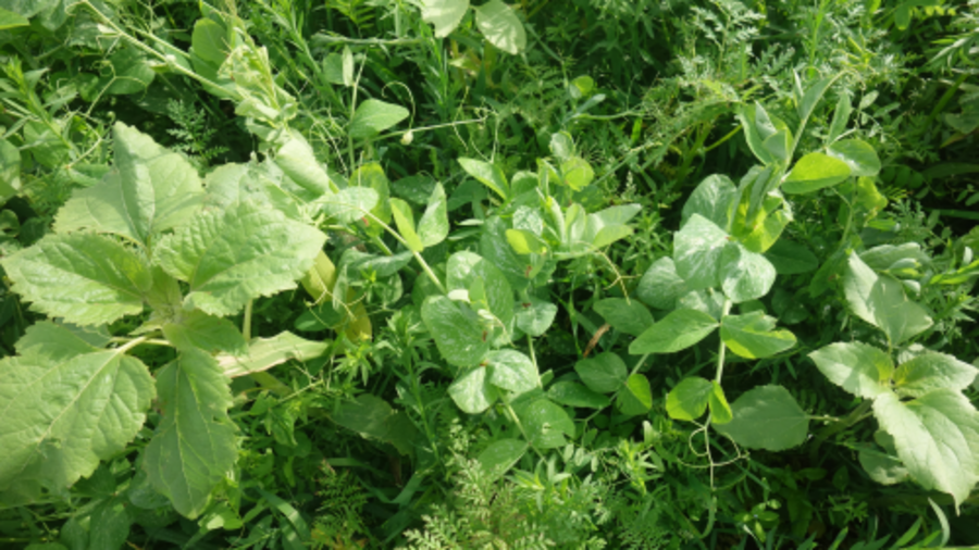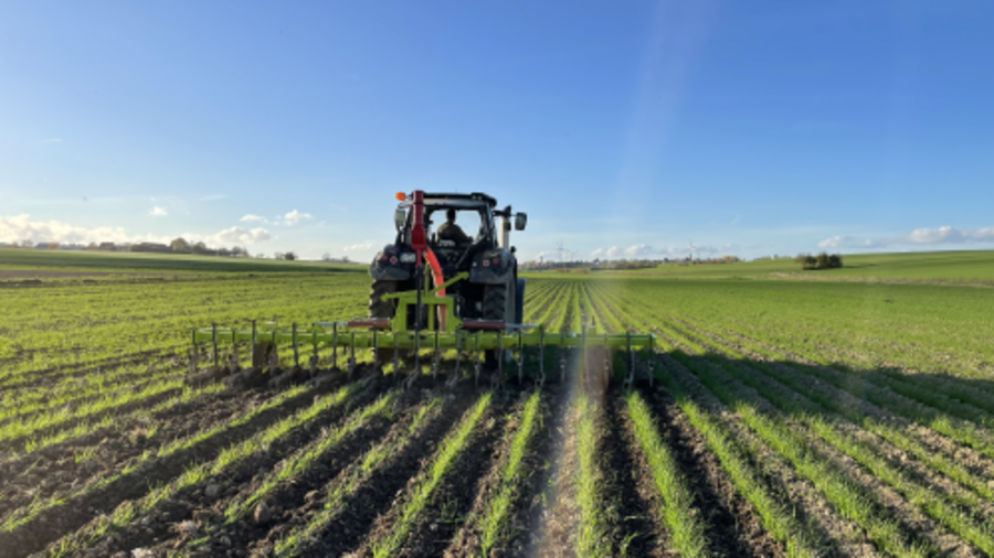 Für die Gesundheit ihrer Tiere versucht Familie Schmidle, so wenig Herbizide und Fungizide wie möglich im Futterbau einzusetzen. Daher arbeitet sie im Ackerbau mit der Dammkultur nach Turiel. Bei diesem System werden lockere Dämme mit einem Abstand von 60 Zentimetern gezogen. Auf den Dämmen wachsen dann die Kulturpflanzen. Es entsteht eine um ein Vielfaches größere Oberfläche, sodass die Pflanzen optimal mit Nährstoffen und Wasser versorgt werden. Die Unkrautregulierung zwischen den weiten Reihen erfolgt mechanisch per Hacke. Untersaaten reduzieren zusätzlich den Unkrautdruck und sorgen zudem für eine Stickstofffixierung im Boden. Daher soll der Anbau von Untersaaten als Sommerzwischenfrucht ausgeweitet bzw. die Winterzwischenfrucht schon im Bestand integriert werden. Durch das Dammsystem auf dem Großteil der Flächen könnte der Einsatz von Pflanzenschutzmitteln in Zukunft stark reduziert oder sogar komplett vermieden werden.