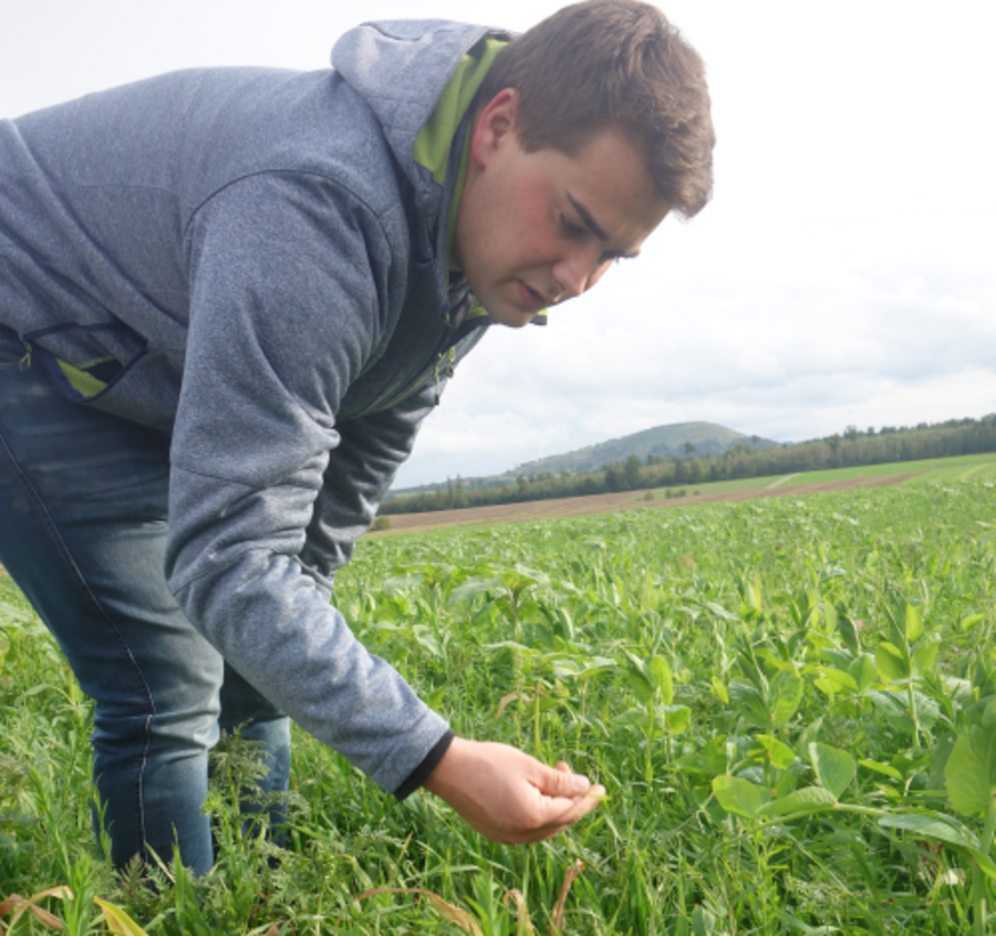 Für ihn besteht die Weiterentwicklung des Familienbetriebs darin, jeweils das Beste aus dem konventionellen und ökologischen System miteinander zu verbinden. Diese Offenheit lebt der Junglandwirt zum Beispiel, indem er Maschinen gemeinsam mit einem benachbarten Bio-Landwirt nutzt. Außerdem zeigt er eine riesige Anbau- und Experimentierfreude beim Anbau von verschiedenen Sorten und Kulturen. So werden immer wieder kleine Versuche angelegt, um Anbaumethoden vergleichen zu können.