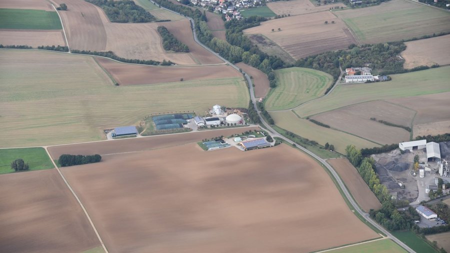 Die Biogasanlage des Betriebes verfügt über einen Trockenfermenter. Das bedeutet, dass sie lediglich mit pflanzlichen Feststoffen wie Mais, anderem Getreide und Festmist statt mit Gülle betrieben werden darf. Dieses energiesparende System sollte ursprünglich den Getreidemarkt entlasten und die hohe Transporteffizienz von Getreide nutzen. Die festen Bestandteile werden getrocknet und dienen als hochwertiger Wirtschaftsdünger, während die flüssigen Gärreste zurück in den Fermenter gehen.
