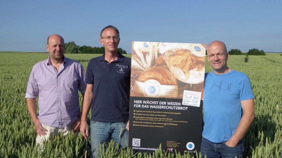 Beim Anbau von Weizen wird auf die letzte Stickstoffdüngung verzichtet und so das Grundwasser geschont. Der sogenannte Wasserschutz-Weizen wird in regionalen Mühlen exklusiv für die Bäckereien im Projektgebiet vermahlen. Diese verarbeiten das Wasserschutz-Mehl zu hochwertigen und leckeren Backwaren. Dabei ist viel handwerkliches Geschick gefragt, da das Getreide weniger Klebereiweiß enthält als herkömmlicher Weizen.